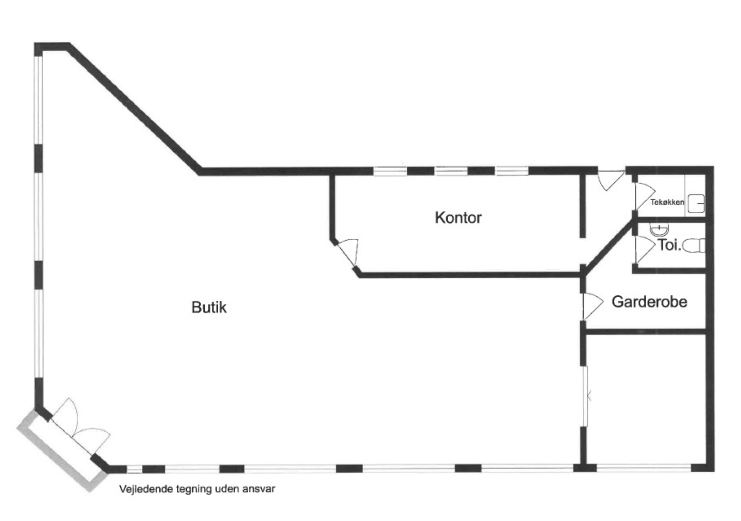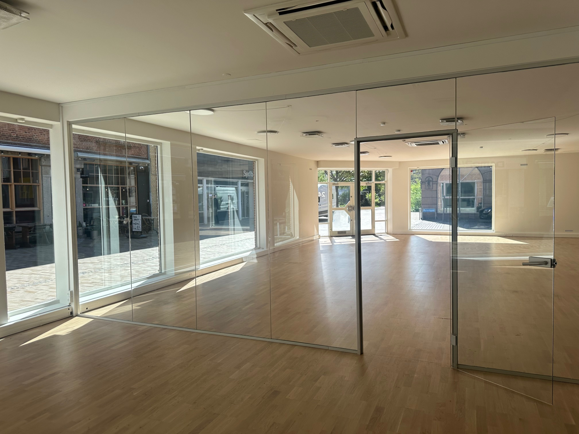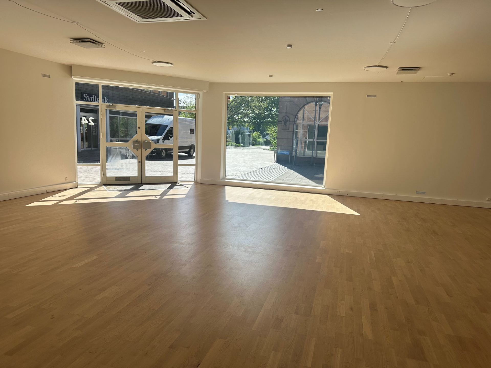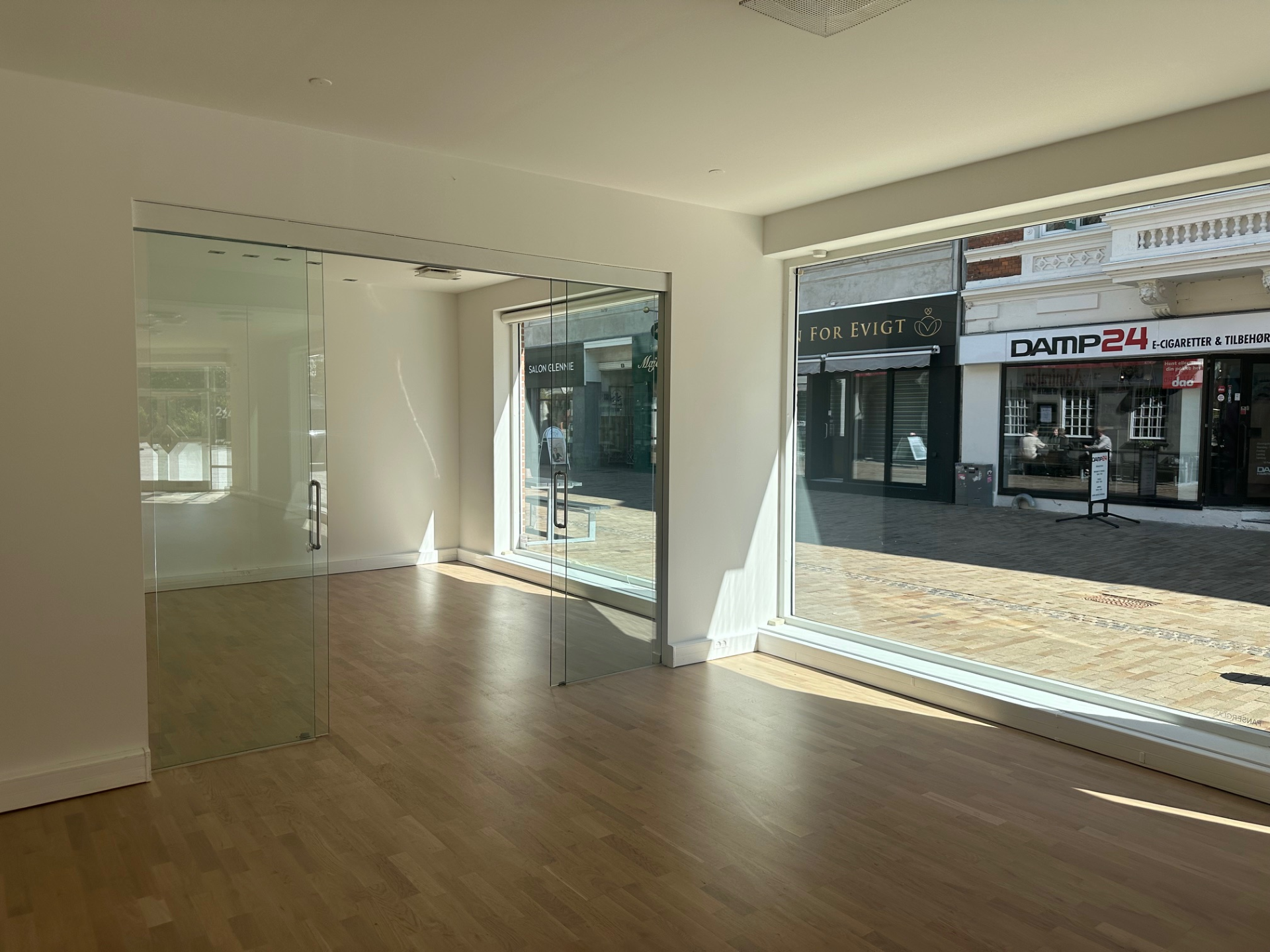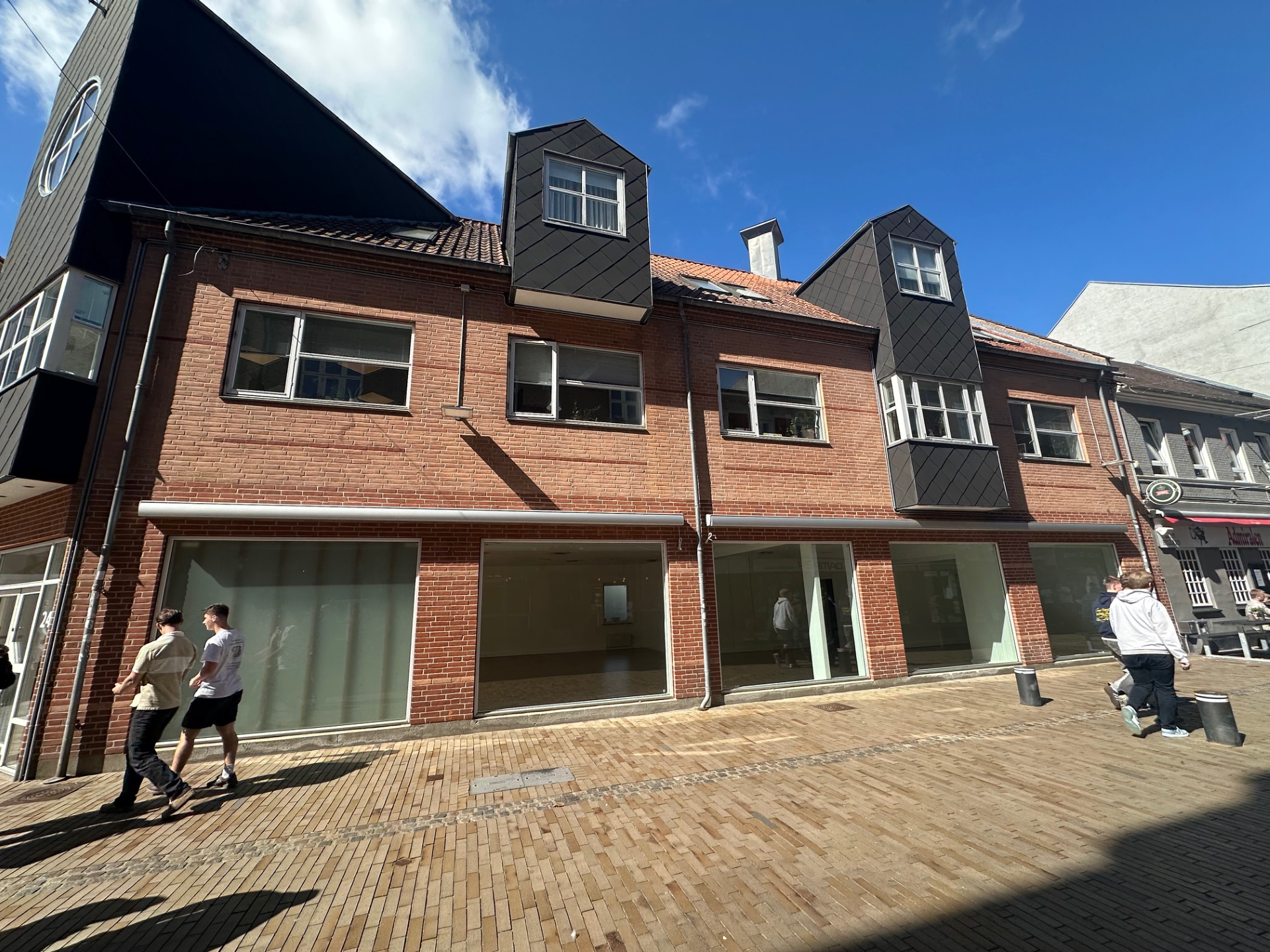 Ejendommen er på 332m2 og rummer i alt 659m2. fordelt på to lejemål. I stueplan er der mulighed for showroom/butik. Mange kender ejendommen fra tiden hvor henholdsvis Danske Bank og senere Bang & Olufsen havde forretning i lokalerne.