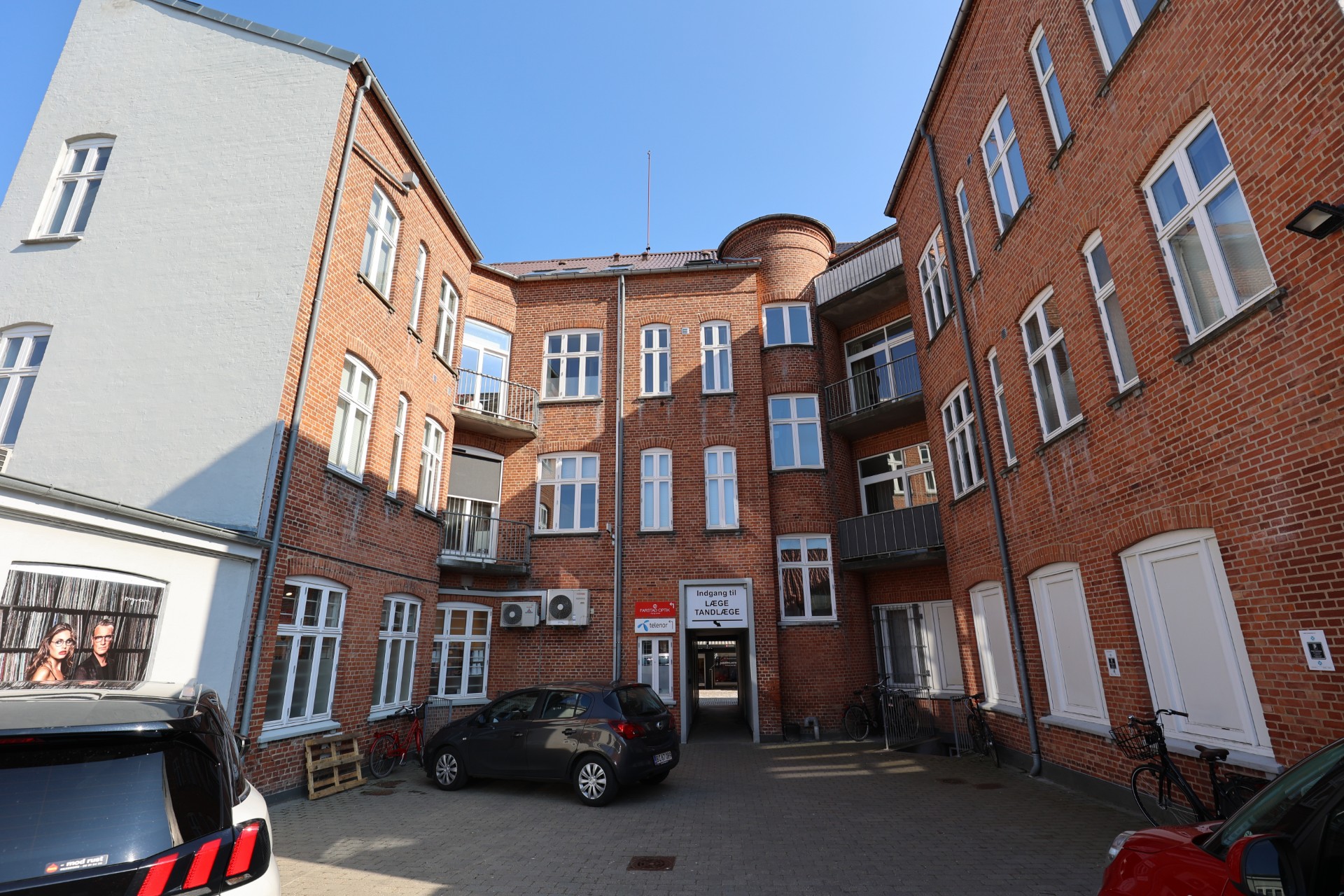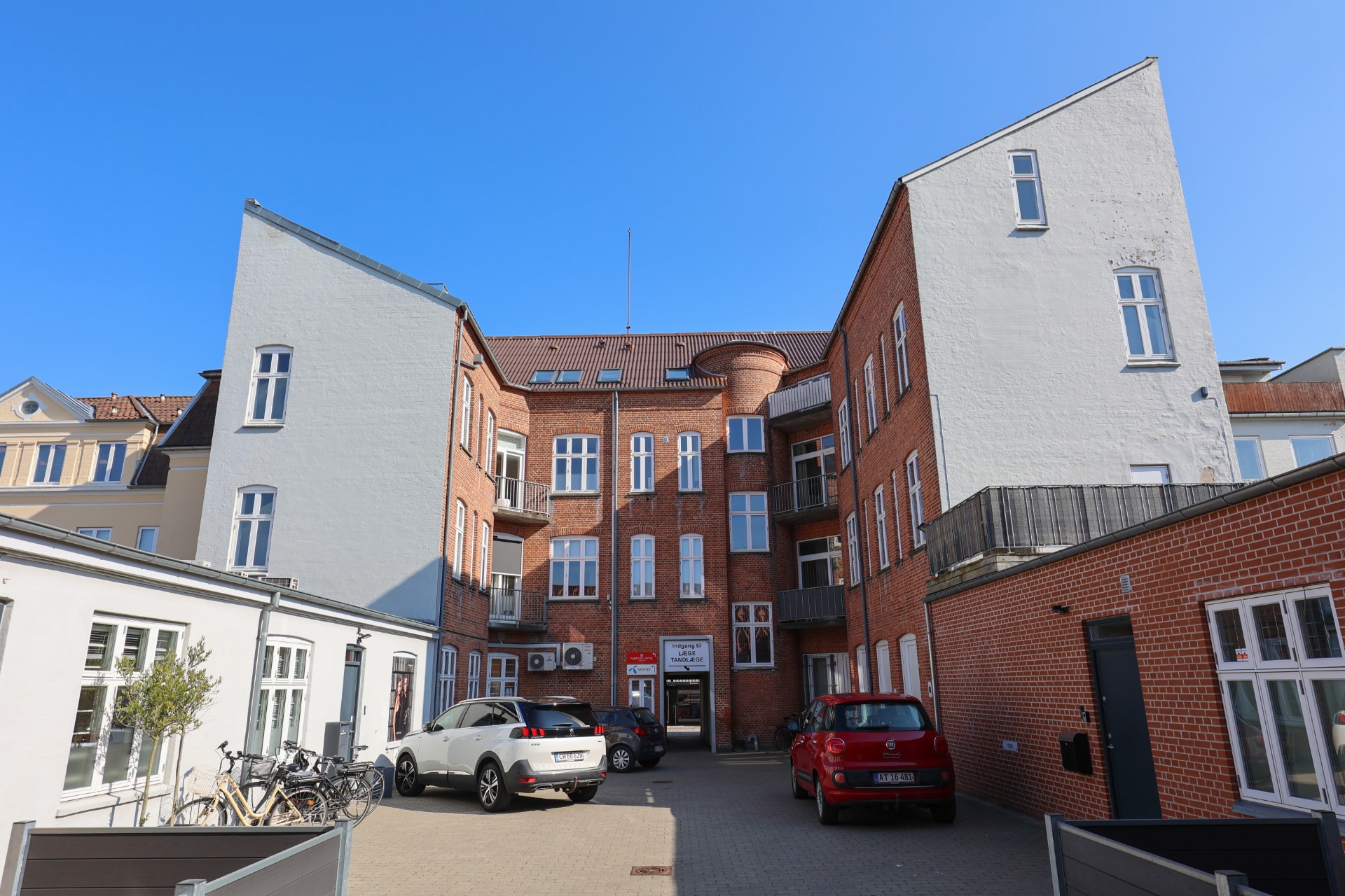 Ejendommen på 444m2 indrettet med 929m2 erhvervsareal, er den blandt vores ejendomme som længst har været i porteføljen. I 1915 åbnede Herman Rasmussen sit første malerværksted i lejede lokaler omme i gården til Søndergade 2C. I 1972 købte malermester Erik Nielsen igen ejendommen, som dengang som nu benyttes til udlejning.